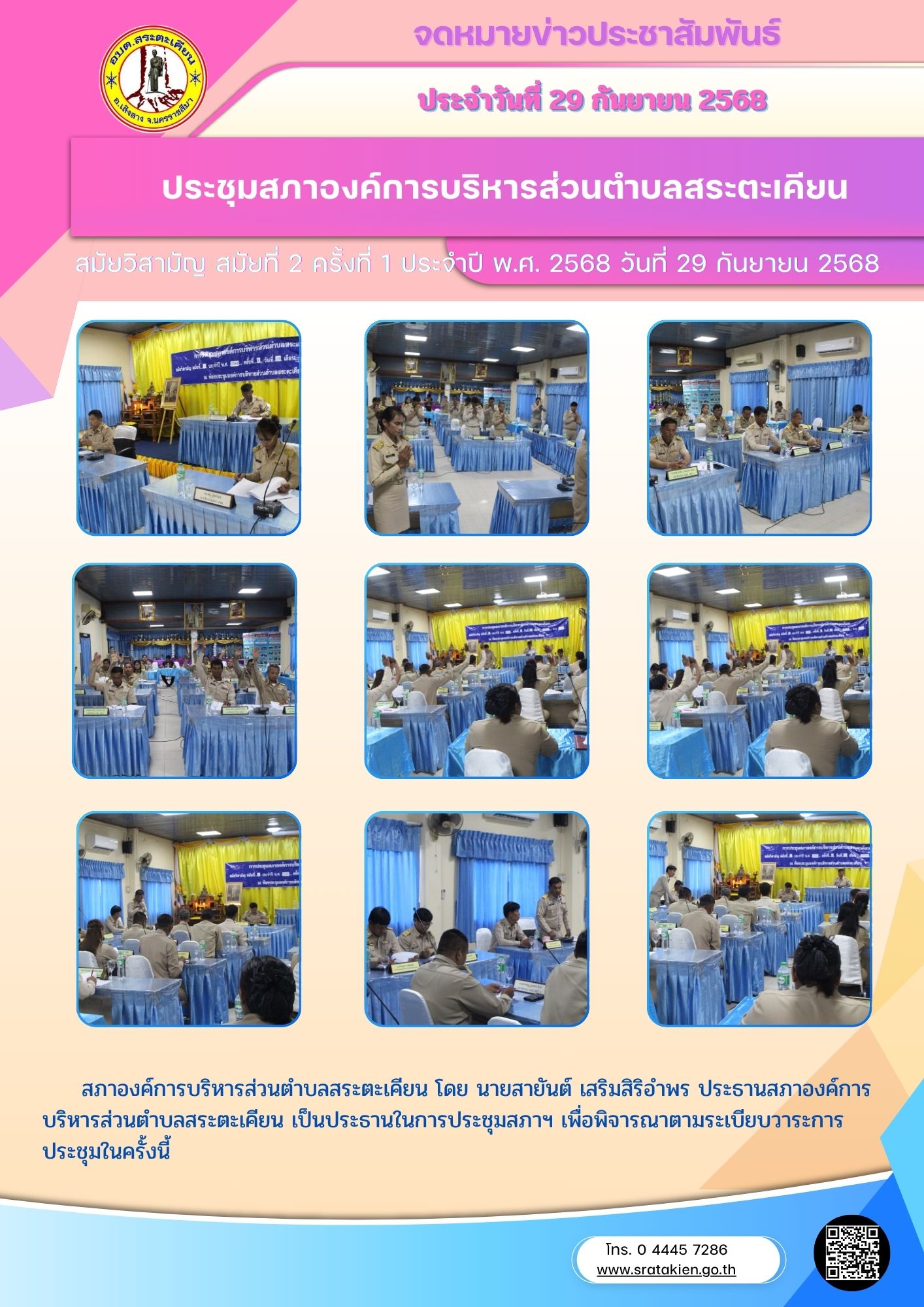 ประชุมสภาองค์การบริหารส่วนตำบลสระตะเคียน สมัยวิสามัญ สมัยที่ 2 ครั้งที่ 1 ประจำปี พ.ศ. 2568 ...