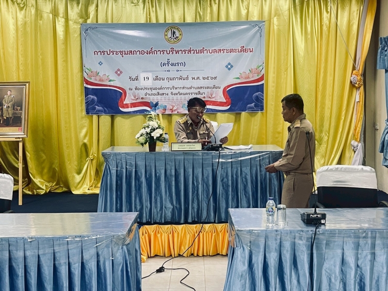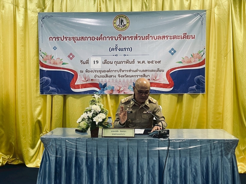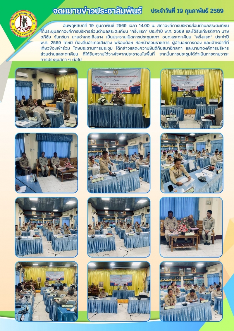 วันพฤหัสบดีที่ 19 กุมภาพันธ์ 2569 เวลา 14.00 น. สภาองค์การบริหารส่วนตำบลสระตะเคียน ได้ประชุมสภาองค์การบริหารส่วนตำบลสระตะเคียน “ครั้งแรก” ประจำปี พ.ศ. 2569 และได้รับเกียรติจาก นายอภิชัย จันทร์มา นายอำเภอเสิงสาง เป็นประธานเปิดการประชุมสภา อบต.สระตะเคียน “ครั้งแรก” ประจำปี พ.ศ. 2569 โดยมี ท้องถิ่นอำเภอเสิงสาง พร้อมด้วย หัวหน้าส่วนราชการ ผู้อำนวยการกอง และเจ้าหน้าที่ที่เกี่ยวข้องเข้าร่วม โดยประธานการประชุม ได้กล่าวแสดงความยินดีกับสมาชิกสภา และนายกองค์การบริหารส่วนตำบลสระตะเคียน ที่ได้รับความไว้วางใจจากประชาชนในพื้นที่ จากนั้นการประชุมได้ดำเนินการตามวาระการประชุมสภา ฯ ต่อไป