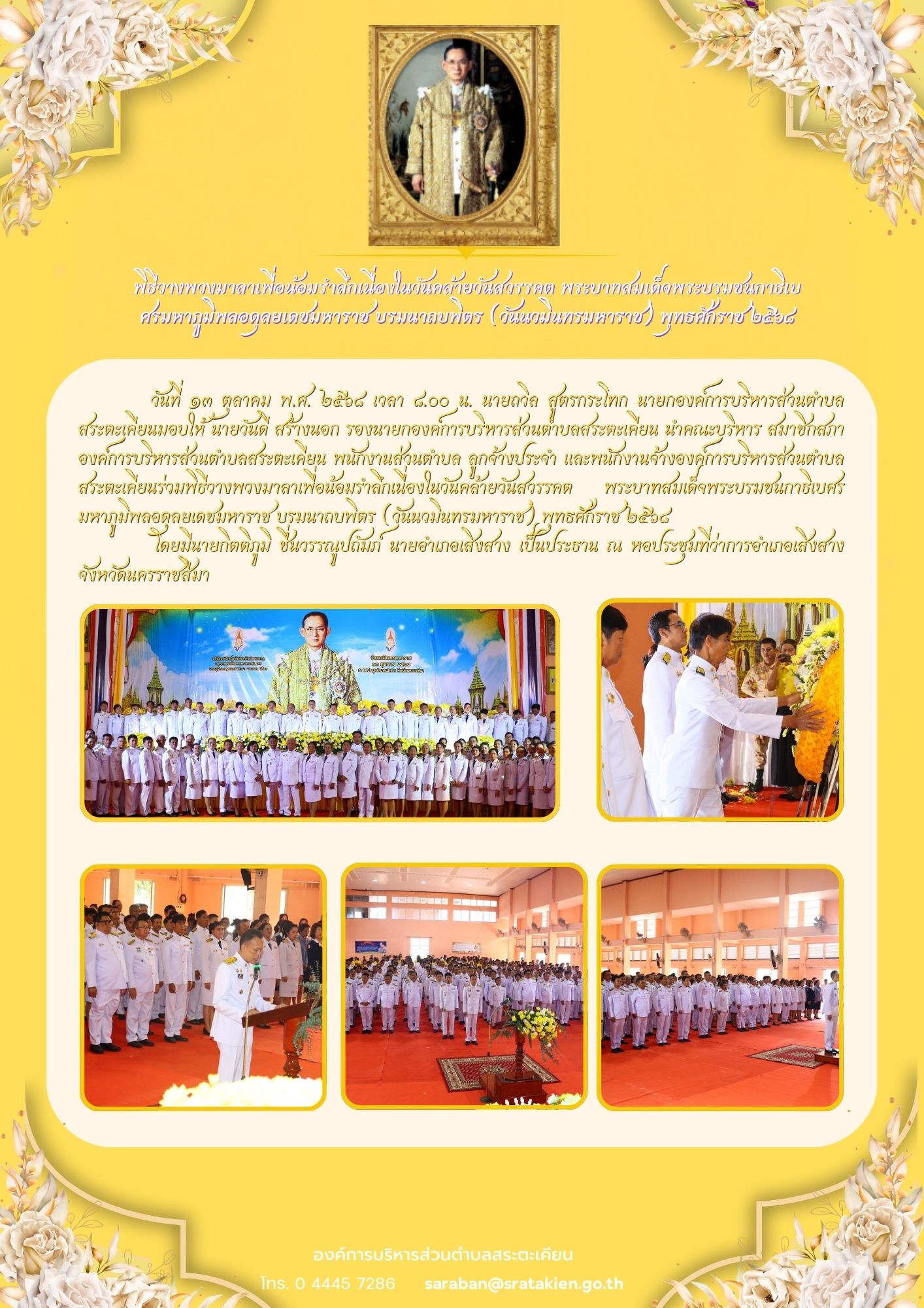 พิธีวางพวงมาลาเพื่อน้อมรำลึกเนื่องในวันคล้ายวันสวรรคต พระบาทสมเด็จพระบรมชนกาธิเบศรมหาภูมิพลอดุลยเดชม�...