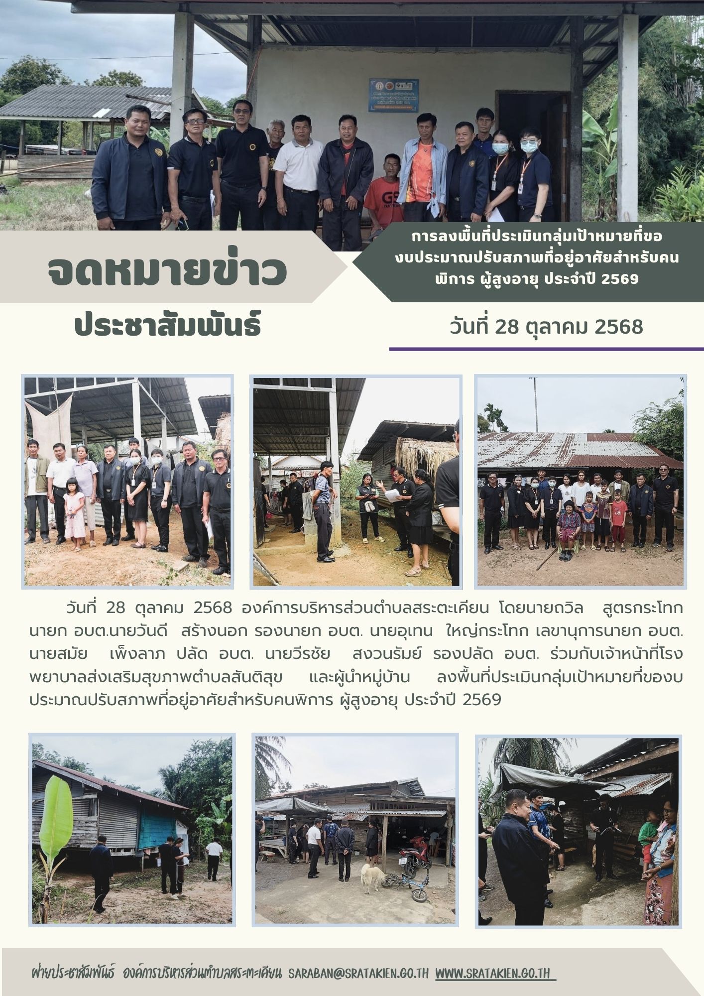 การลงพื้นที่ประเมินกลุ่มเป้าหมายที่ขอ งบประมาณปรับสภาพที่อยู่อาศัยสำหรับคนพิการ ผู้สูงอายุ ประจำปี 2569...