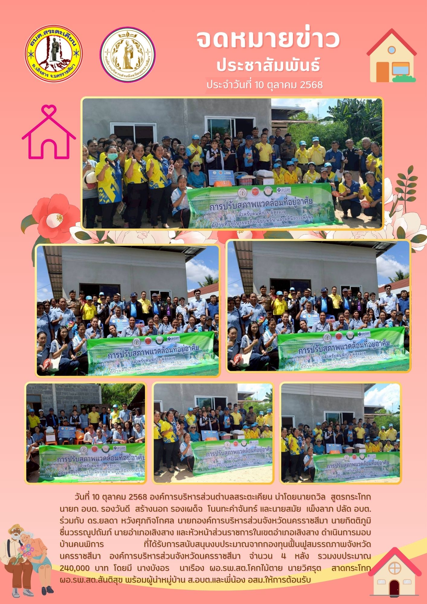 การมอบบ้านคนพิการ ที่ได้รับการสนับสนุนงบประมาณจากกองทุนฟื้นฟูสมรรถภาพจังหวัดนครราชสีมา องค์การบริหารส�...