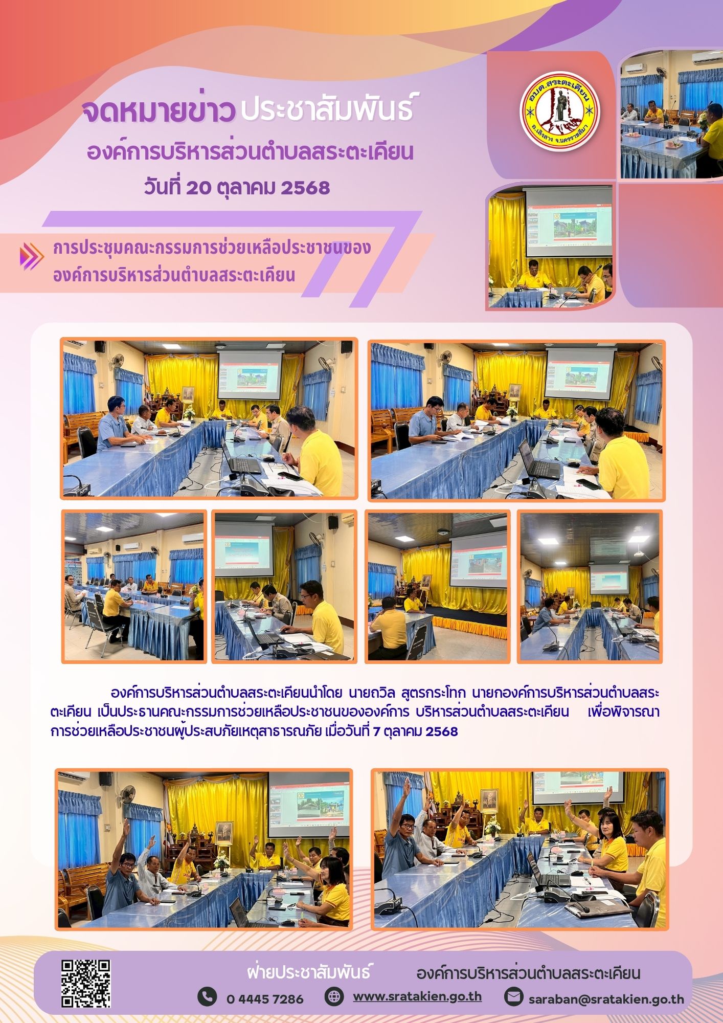 การประชุมคณะกรรมการช่วยเหลือประชาชนของ องค์การบริหารส่วนตำบลสระตะเคียน วันที่ 20 ตุลาคม 2568...